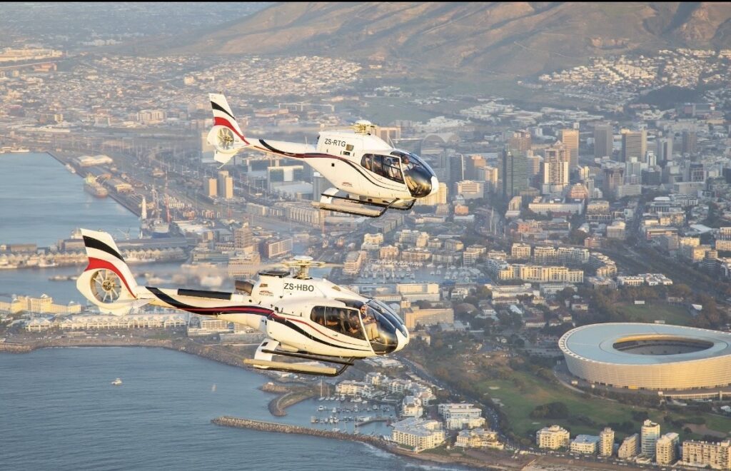 Passeio de helicóptero com vista panorâmica.