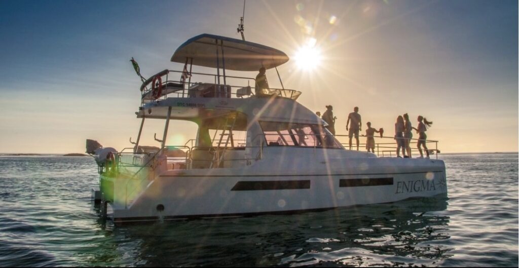 Passeio de barco ao pôr do sol.